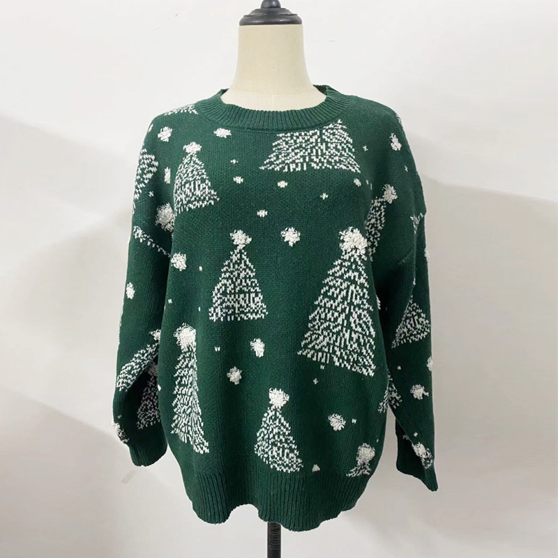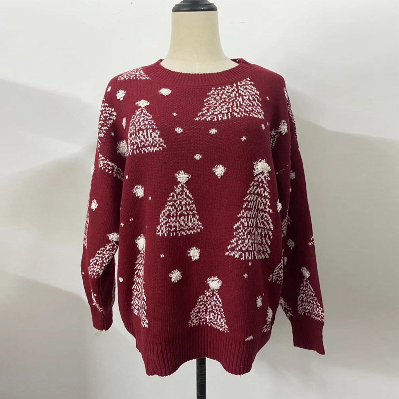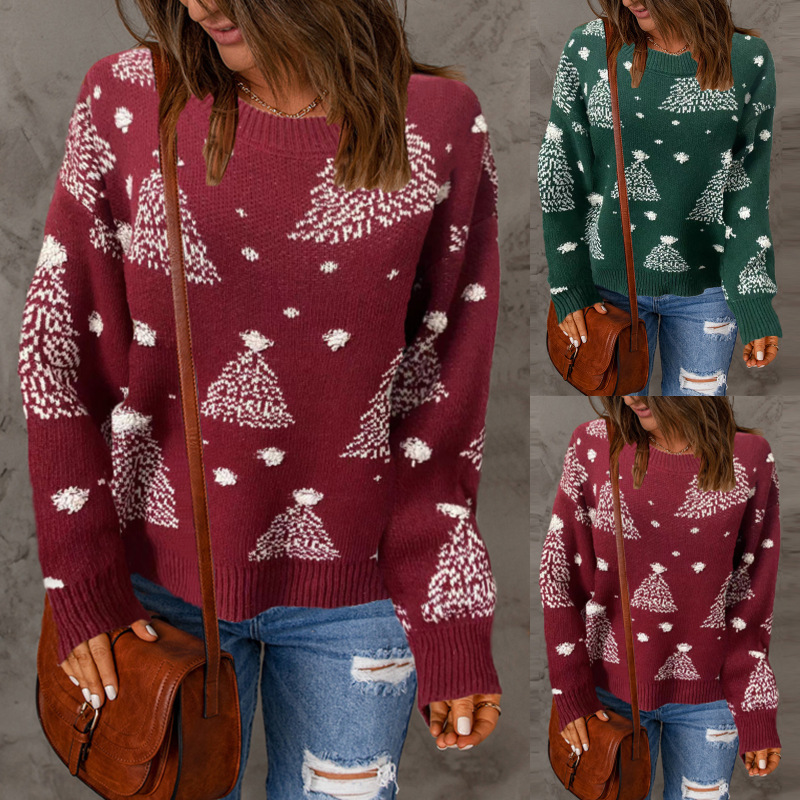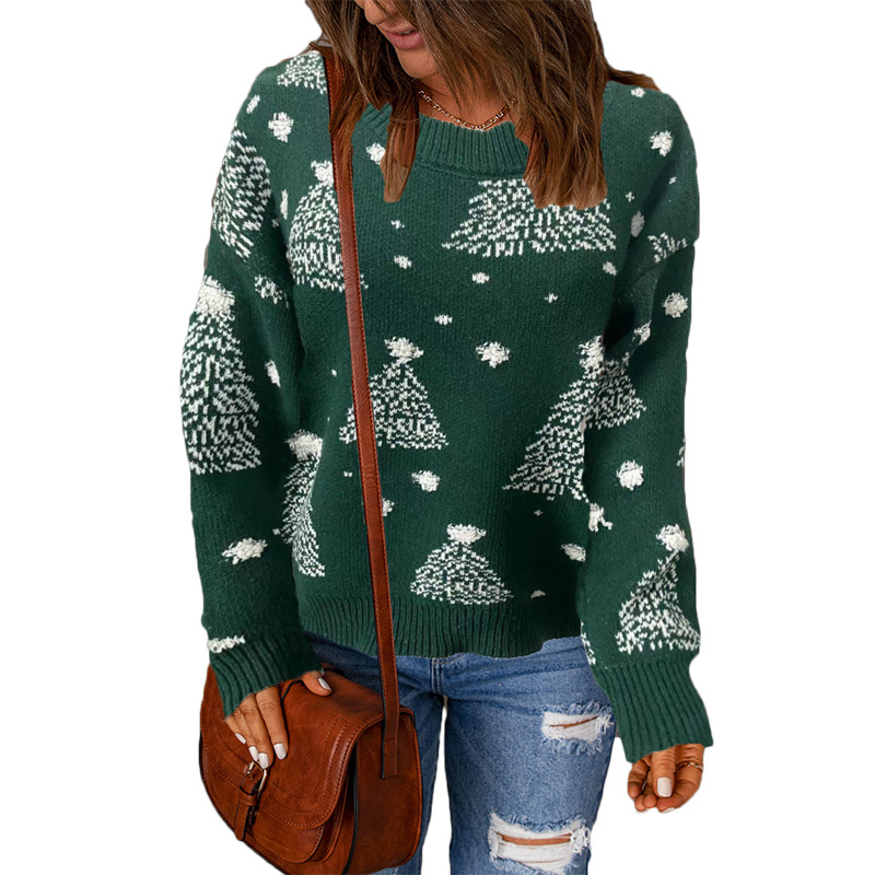 Christmas Sweater Round Neck Long Sleeved Pullover Knitted Jacket For Women
